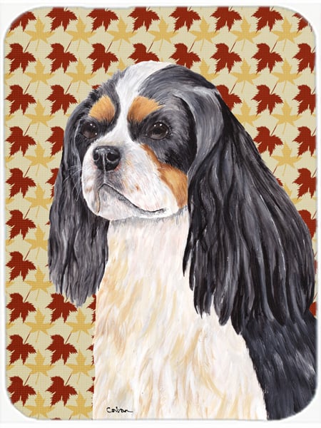 Carolines Treasures SC9231LCB 12 x 15 in. Cavalier Spaniel Fall Leaves Portrait Glass Cutting Board, Large