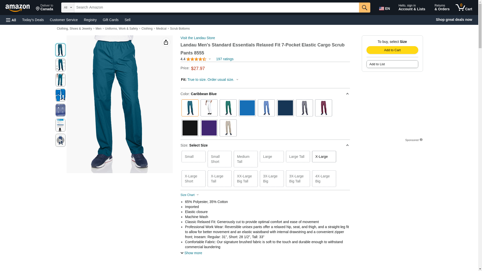 Landau 8555-CBP-XLG - SCRUB PANT MEN CARGO - CIA Medical