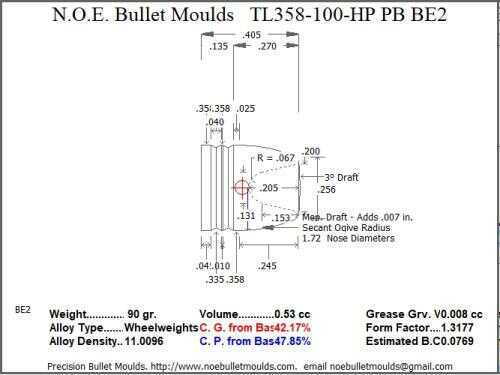 Bullet Mold 2 Cavity Brass .358 caliber Plain Base 100 Grains bullet with a Round/Flat nose profile type. Tumble lube style b - 11229207