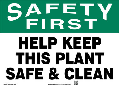 Help Keep This Plant Safe & Clean 14X20 .055 Polyethylene Sign
