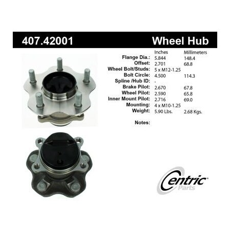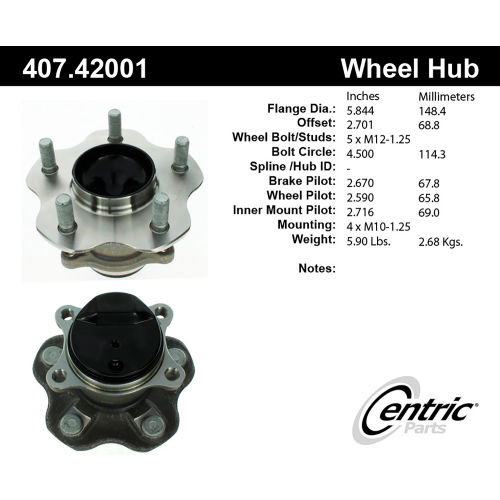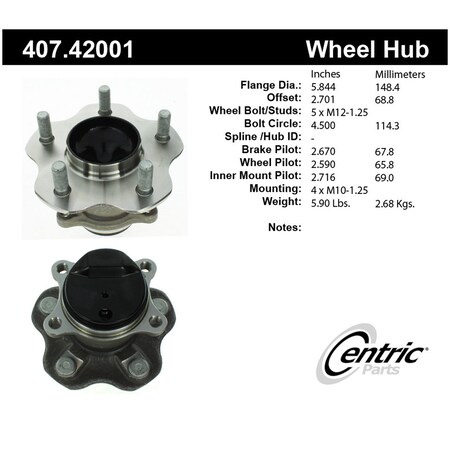 - Centric Parts Wheel Bearing and Hub Assembly P/N:407.42001