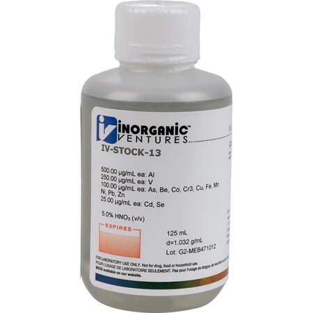Inorganic Ventures IV-STOCK-13 Multi-Element Trace Metals Calibration Standard for ICP, 125mL Volume
