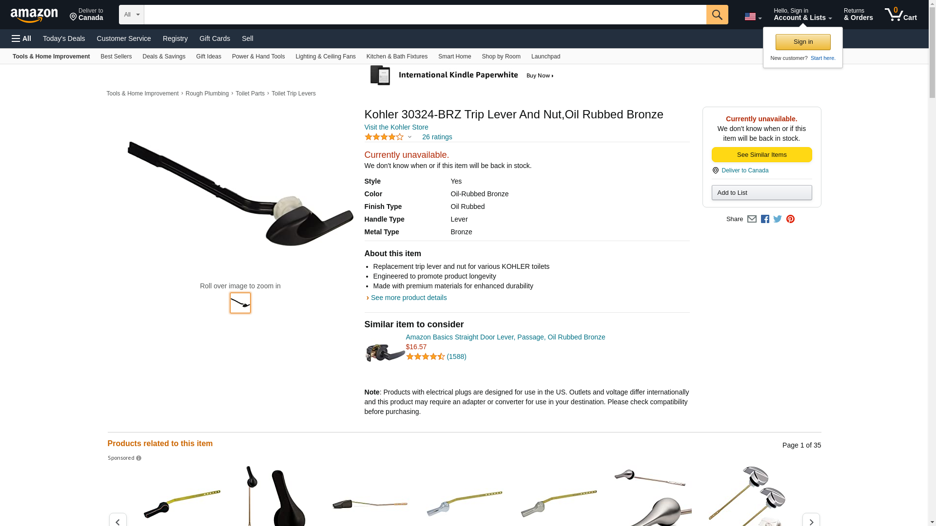 Kohler 30324-BRZ trip lever & nut