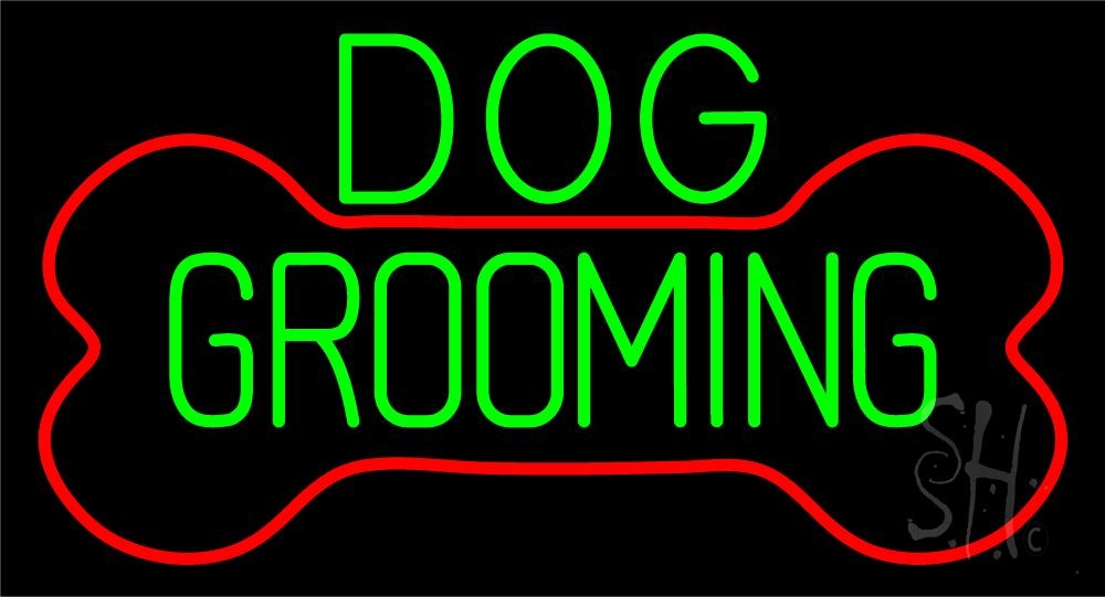 Green Dog Grooming Red Bone Neon Sign 20" Tall x 37" Wide x 3" Deep