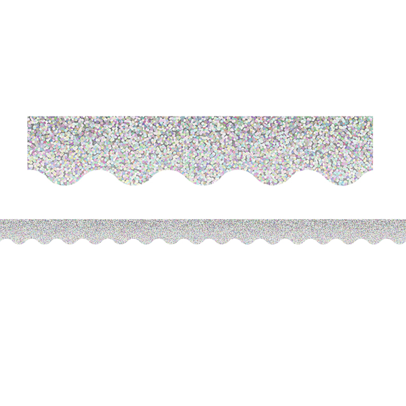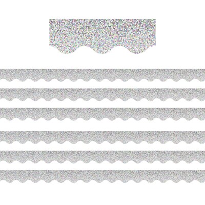 Teacher Created Resources Silver Sparkle Scalloped Border Trim, 35 Feet Per Pack, 6 Packs