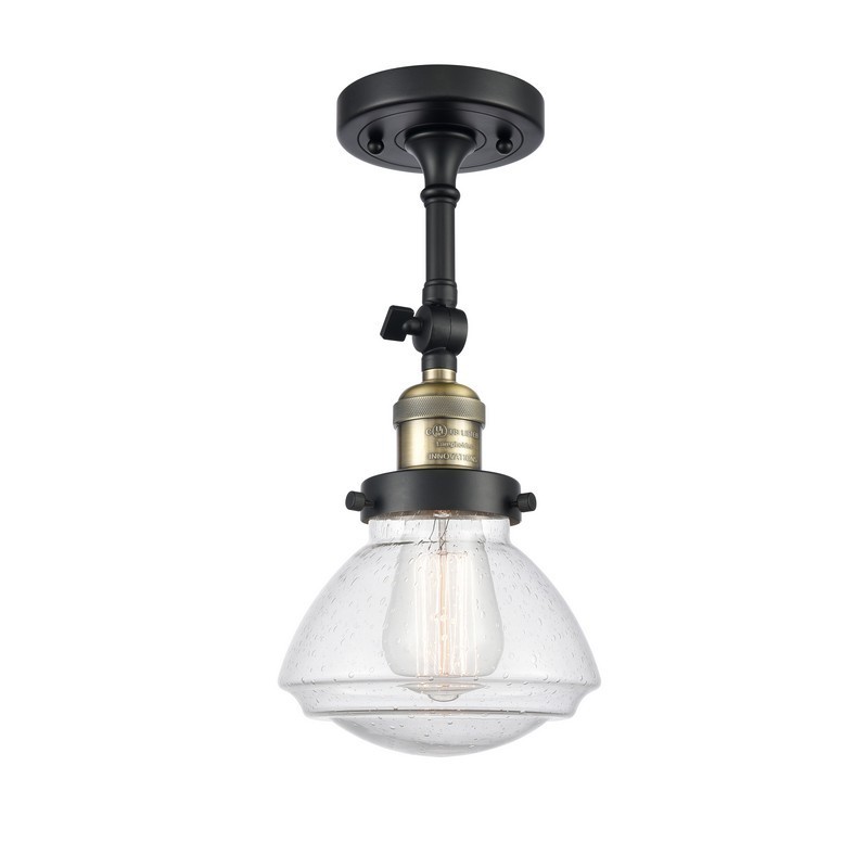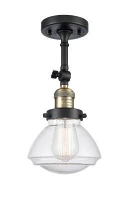 Innovations 201F-BAB-G324 Olean 1 Light Semi-Flush Mount Part of The Franklin Restoration Collection, Black Antique Brass