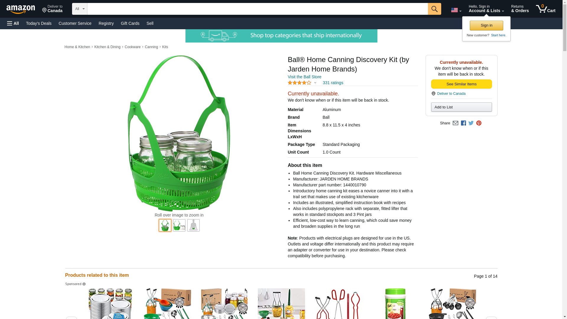- Ball Home Canning Discovery Kit. Hardware Miscellaneous