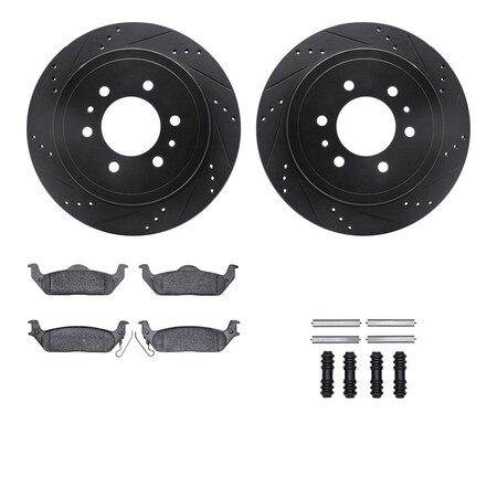 Dynamic Friction Company Rear Brake Rotors-Drilled and Slotted-Black with Ultimate Duty Performance Brake Pads includes Hardware 8412-54075