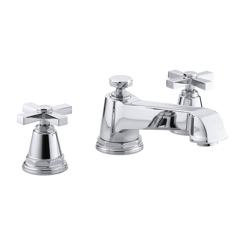KOHLER K-T13140-3A-CP PINSTRIPE PURE 4 1/8 INCH THREE HOLE DECK MOUNT TUB FILLER WITH CROSS HANDLES, POLISHED CHROME