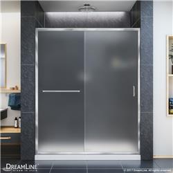 DreamLine Infinity-Z 30 in. D x 60 in. W x 74 3/4 in. H Frosted Sliding Shower Door in Chrome and Left Drain Black Base, DL-6970L-88-01F