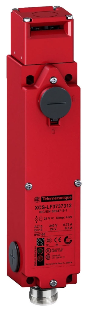 | Feature | Keyed safety interlock switch with solenoid unlock on energize and metal enclosure |