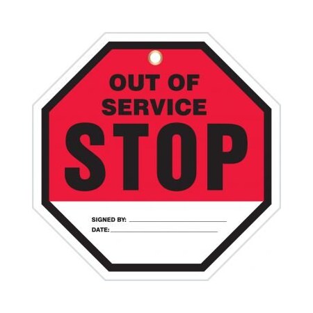 Accuform TAP846CTM PF-Cardstock Octo-Tag, Legend "Stop Out of Service", 8" Octagon Shape, 0.010" Thickness, Red/Black on White (Pack of 5)