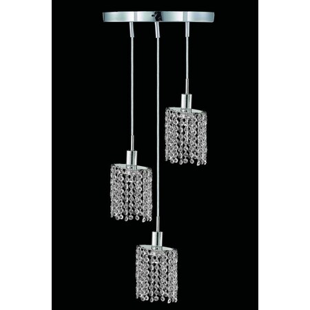 Elegant Lighting Mini Collection Hanging Fixture 3-Light Round Canopy Ellipse Pendant with Elegant Cut Crystals, Chrome Finish