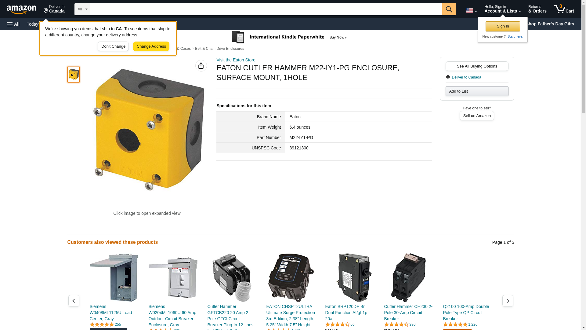 CUTLER HAMMER M22-IY1-PG PUSHBUTTON Enclosure, 1 Hole, 22 MM, Yellow, M22 Series, Surface Mount Enclosure