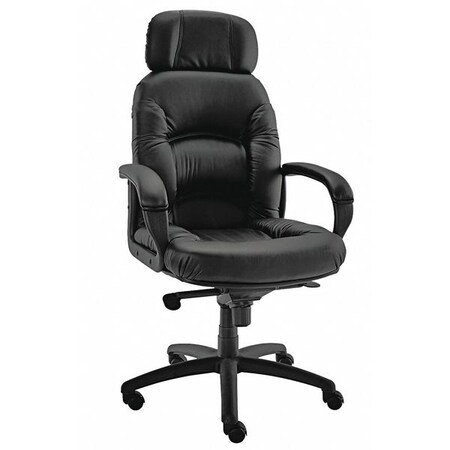 Black Caresoft upholstery with the look and feel of top-grain leather. Tufted cushions, lumbar support and padded arms to provide all day comfort. Black padded polyurethane loop arms. Black steel frame. Padded headrest. Pneumatic seat height adjustment. 360#xB0 swivel. Recommended Applications: Executive Management Seat/Back Color: Black Arms Included: Yes Arm Style: Padded Loop Arms. Unit of Measure : Each