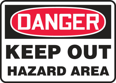 MADM047VP, 7" x 10" OSHA Danger Safety Sign "Keep Out - Hazard Area" Plastic Features: Light abrasion and chemical resistance that will not rust, chip, or crack Fluted polypropylene .160 thick Requires mounting to a wall or fence Withstands wet, damp, and other limited environmental exposure Finished with square corners and four mounting holes