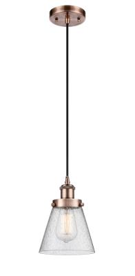 INNOVATIONS LIGHTING 916-1P-AC-G64-LED BALLSTON SMALL CONE 1 LIGHT 6 INCH SEEDY GLASS MINI PENDANT, ANTIQUE COPPER, LED