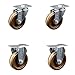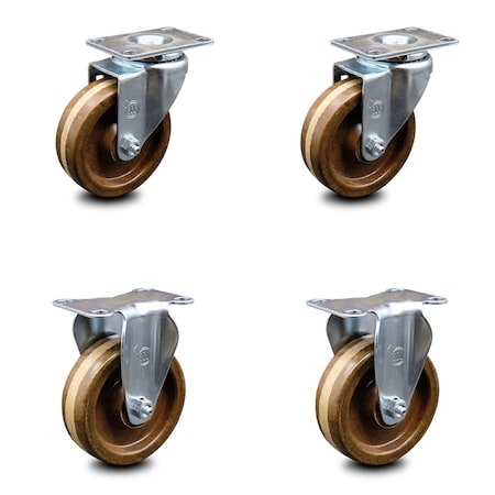 4 Inch High Temp Phenolic Wheel Swivel Top Plate Caster Set with 2 Rigid SCC