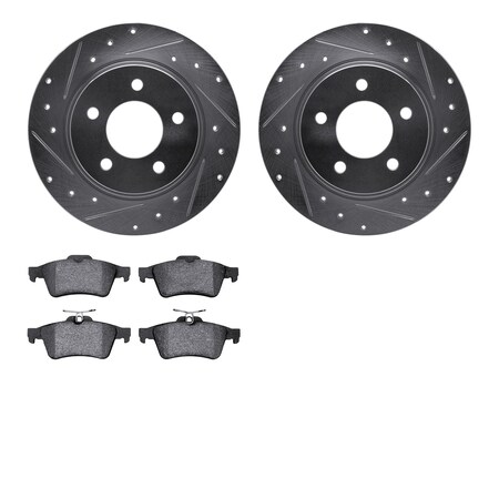 Dynamic Friction Company Rear Brake Rotors-Drilled and Slotted-Silver with 3000 Series Ceramic Brake Pads 7302-80060