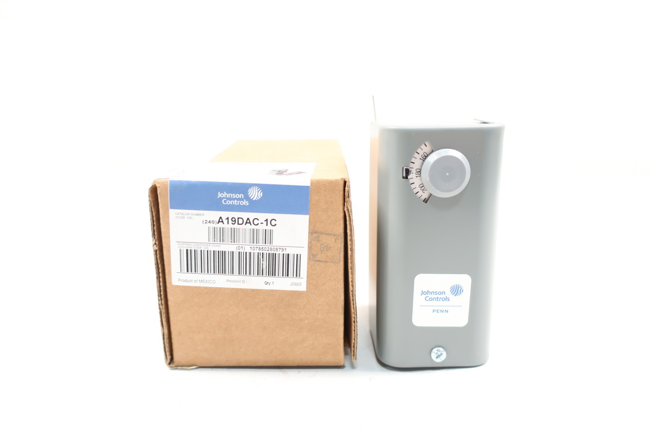 Johnson Controls A19DAC-1C A19D Series Surface Mounted Temperature Control, 100 to 240 Degree F Temperature Range and Scale, 10 F Degree (+/- 2.8 F Degree) Differential, Visible Range Scale