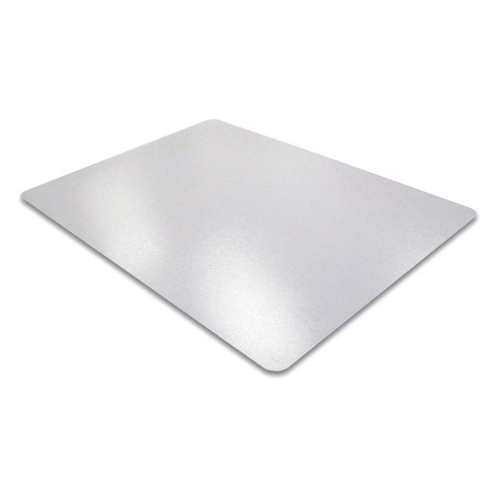 - The transparency of this mat allows your flooring to show through - it won't look intrusive in your home or Office; lies perfectly flat right away and has an easy glide surface to help reduce leg fatigue