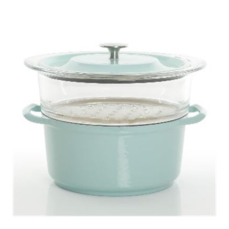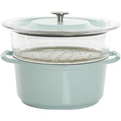Kenmore Oak Park Cast Iron Dutch Oven with Lid and Steamer, 5-Quart, Glacier Blue