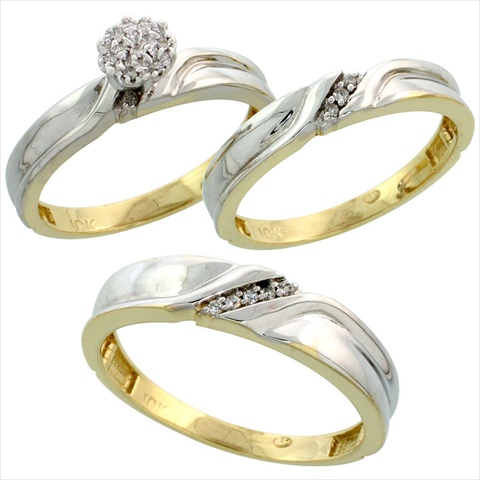 World Jewels 10K Yellow Gold .11 Kt. Brilliant Cut Diamond Trio Engagement Wedding Ring Set, Ladies Size 5.5