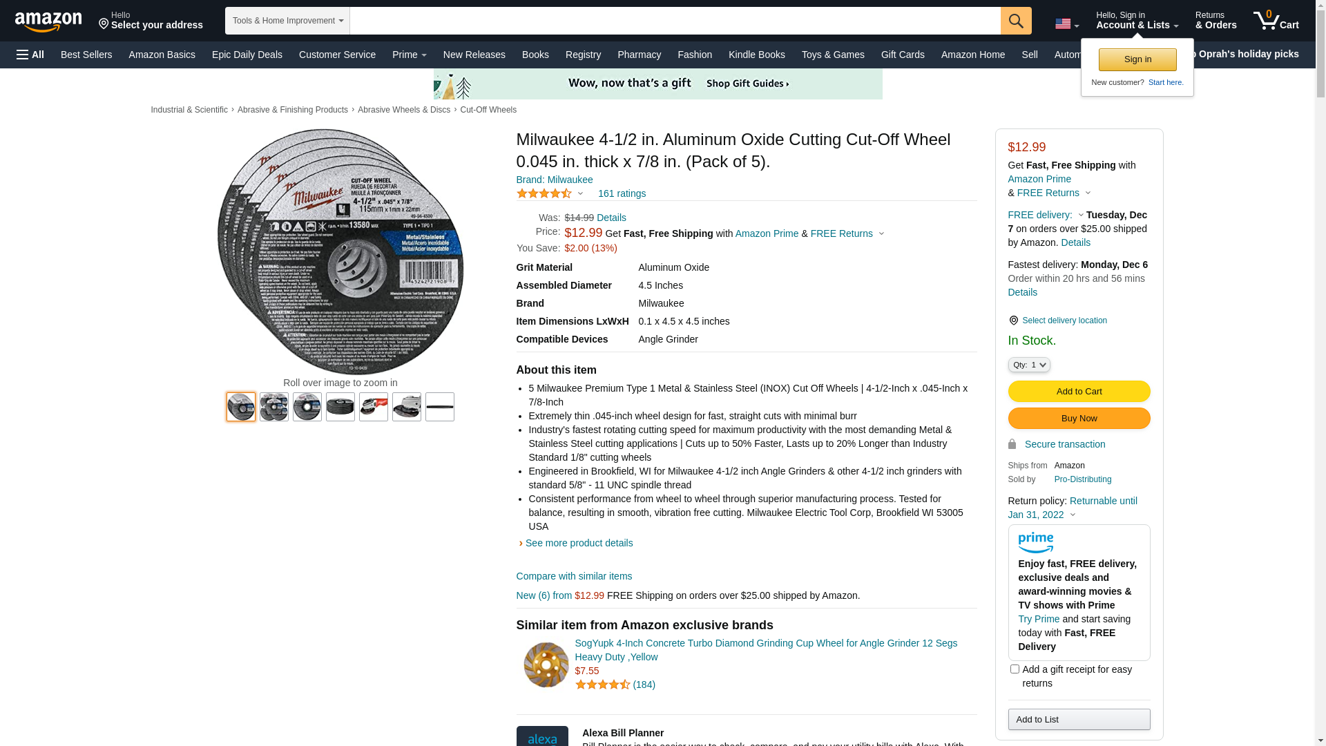 | Feature | Milwaukee Cut-Off Wheel 4-1/2 In X 045 In X 7/8 In Type 1 |