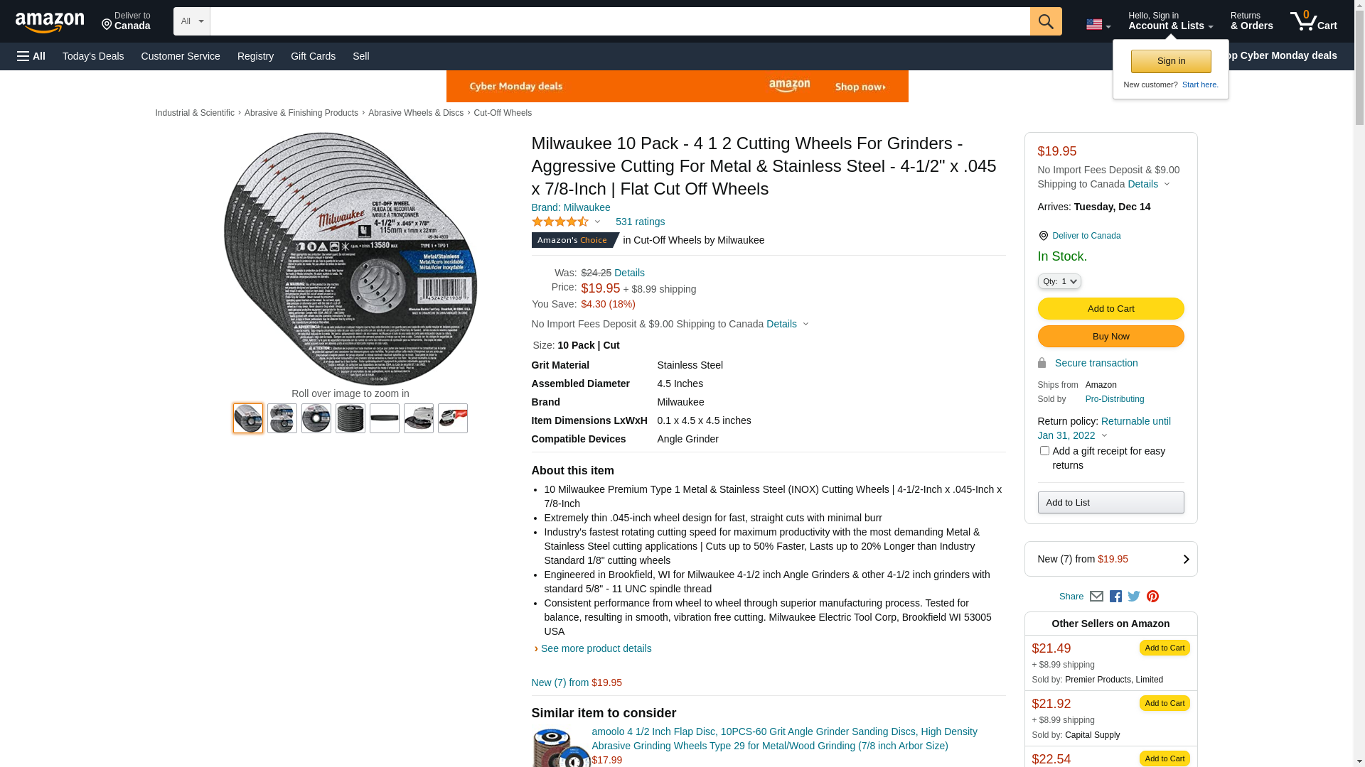 | Feature | "25 Milwaukee's Premium Type 1 Stainless Steel (INOX) Cutting Wheels | 4-1/2-Inch X .045-Inch X 7/8-Inch" |