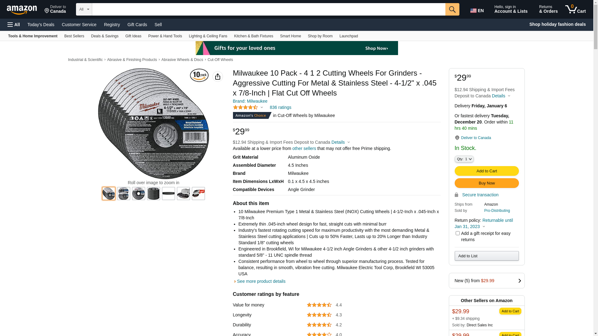| Feature | "50 Milwaukee's Premium Type 1 Stainless Steel (INOX) Cutting Wheels | 4-1/2-Inch X .045-Inch X 7/8-Inch" |