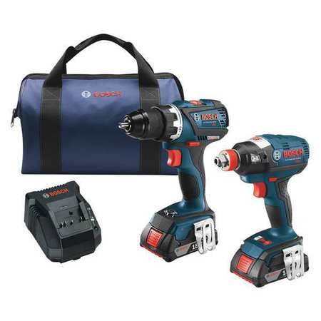 Bosch CLPK251-181 18V 2 Tool Combo Kit with 1/4" and 1/2" Socket Ready Impact Driver and 1/2" Hammer Drill/Driver, Blue