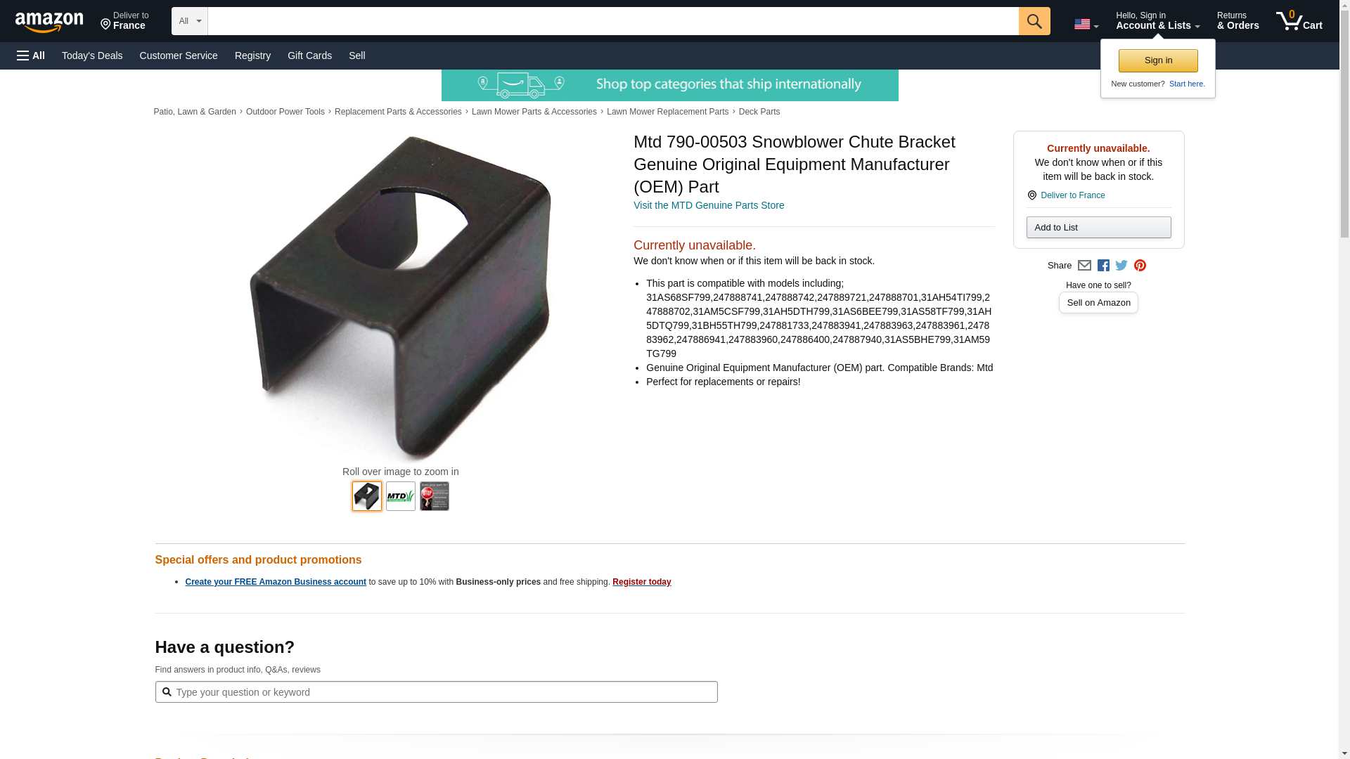 BRACKET-CHUTE REINFO To Replace MTD # 790-00503