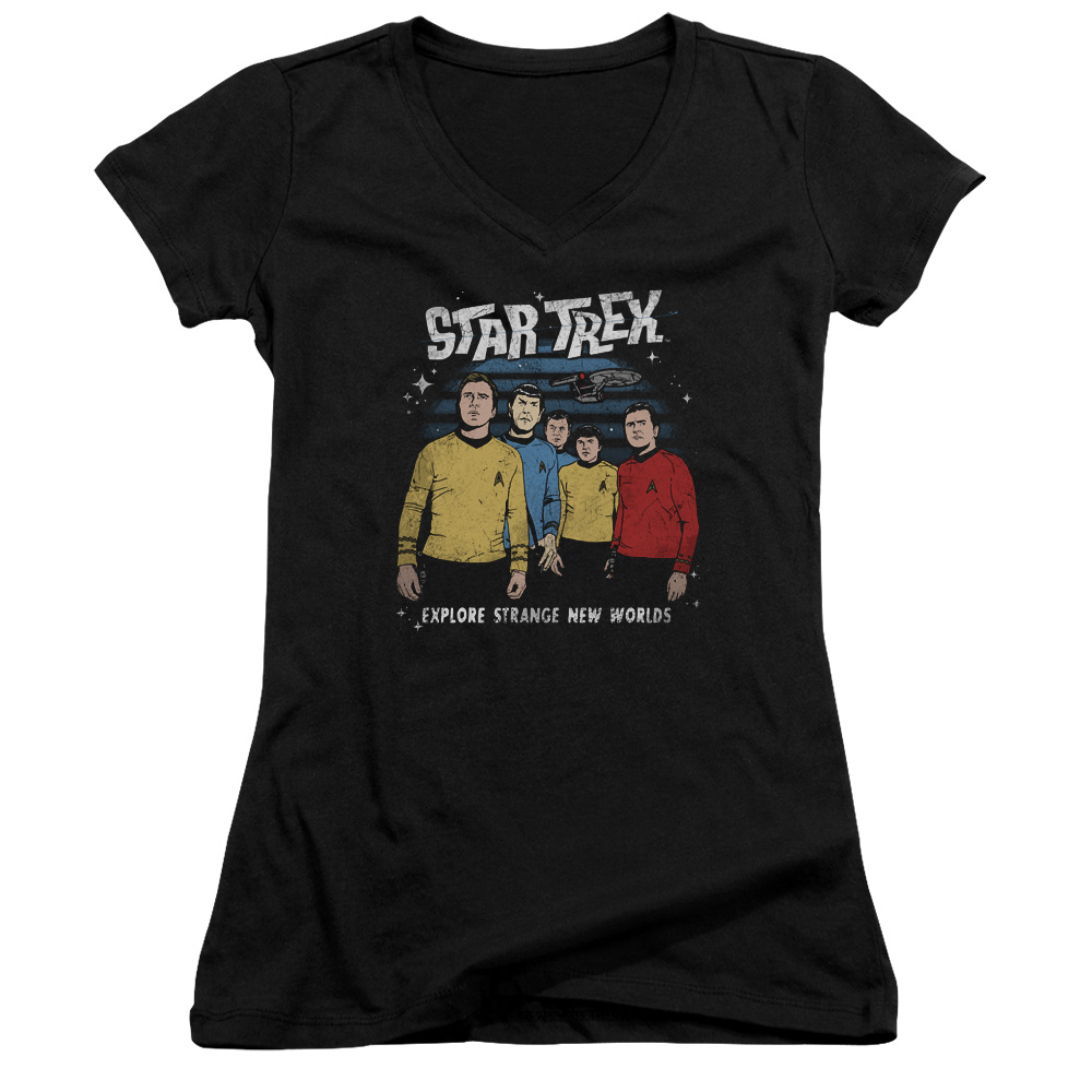 Trevco CBS1735-JV-4 Star Trek & Stange New World Juniors V-Neck Sheer Jersery with Cap Sleeve, Black - Extra Large
