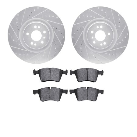 Dynamic Friction Company Front Brake Rotors Drilled and Slotted Silver with 5000 Advanced Brake Pads - 7502-63505