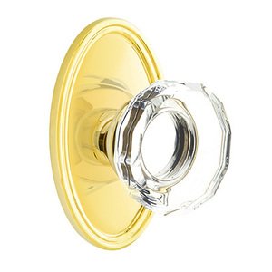 Crystal Door Hardware Collection - Lowell Privacy Door Knob with Oval Rose in Polished Brass by Emtek Hardware - 8220LWUS3238 | MyKnobs