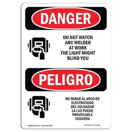 OSHA Danger, Do Not Watch Arc Welder At Work Bilingual, 24in X 18in Rigid Plastic