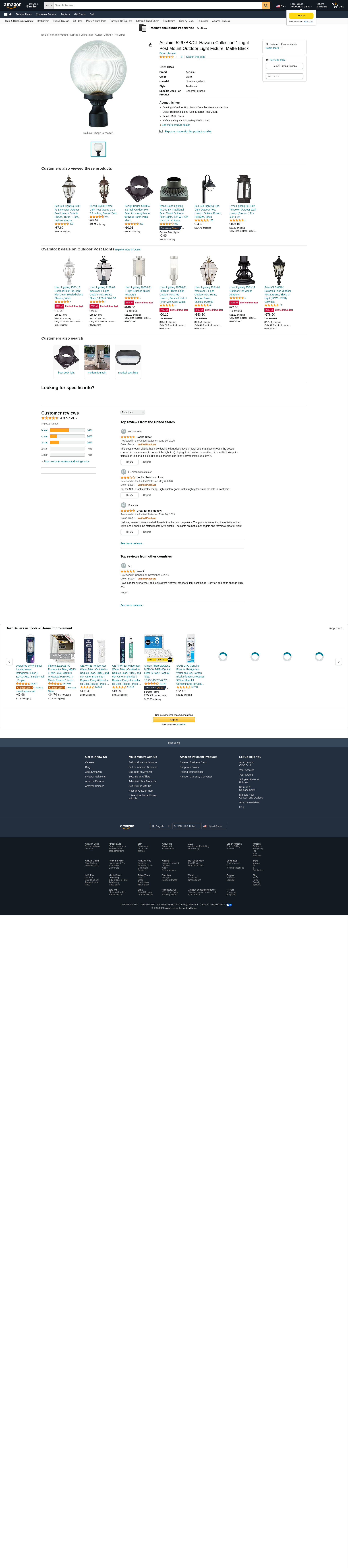 Acclaim 5267BK/CL Havana Collection 1-Light Post Mount Outdoor Light Fixture, Matte Black