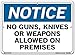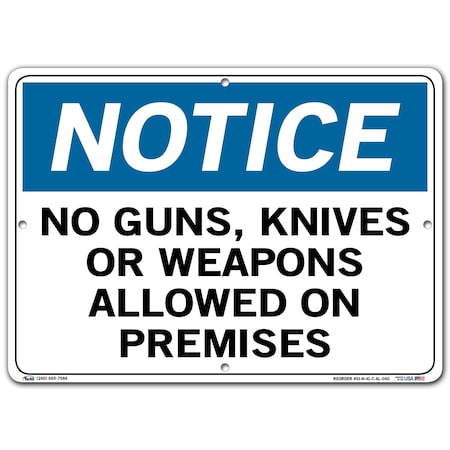 Vestil SI-N-41-C-AL-040 Notice Sign Aluminum .040" Overall Size 14.5"W x 10.5"H No Guns, Knives, Or Weapons Allowed on Premises , 10.5" Height, 14.5" Wide, 0.04" Length