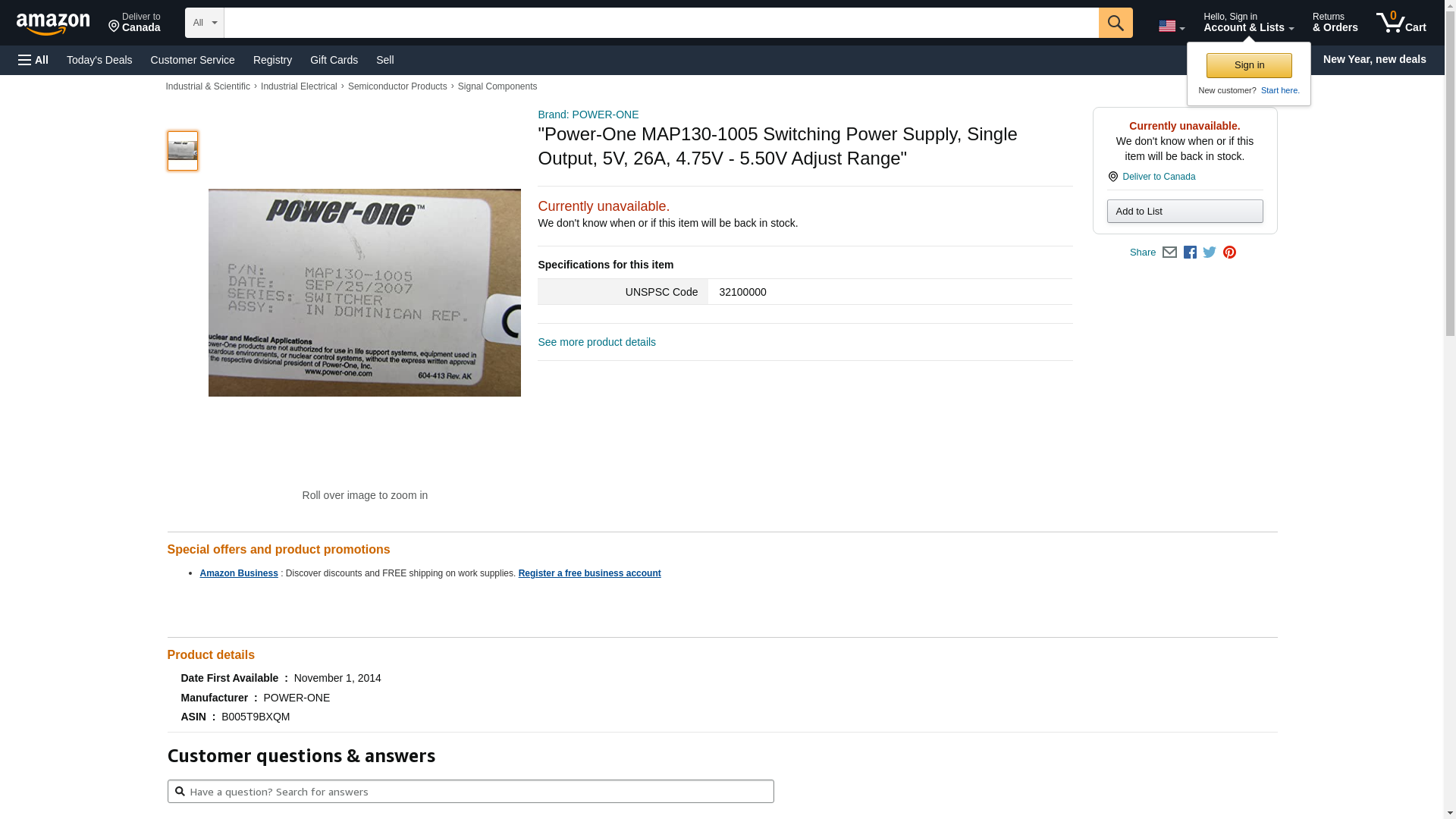 ![]() Onlinecomponents.com | MAP130-1005 | 1 | 4 | 1 | 1 @ $262.91 |