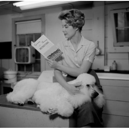 Stretched Canvas Art - Young woman reading with puddle lying on her laps - Medium 18 x 24 inch Wall Art Decor Size.