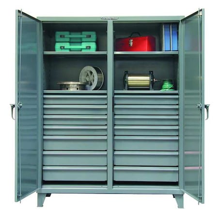 Strong Hold Ultra-Capacity Double-Shift Cabinet with Drawers - 72X24x78" - 14 Drawers - Medium Gray