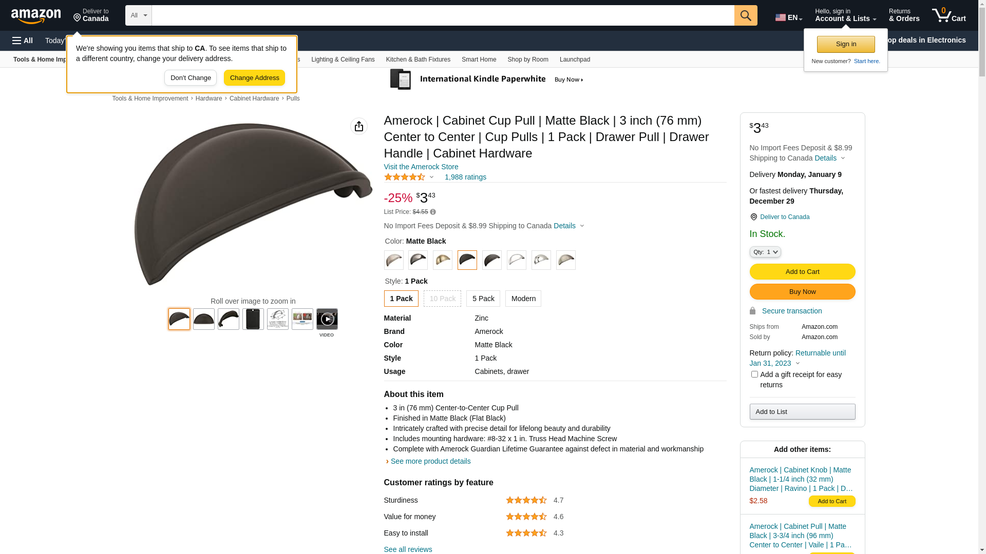 | Feature | Amerock BP53010-FB Allison Value Hardware 3-Inch Center-to-Center Pull, 10 Pack |