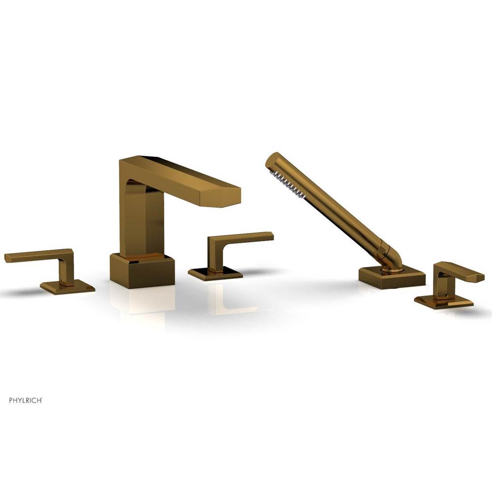 PHYLRICH 184-49/025 DIAMA 6 3/8 INCH FIVE HOLES WIDESPREAD DECK MOUNT TUB SET WITH LEVER HANDLES AND HAND SHOWER,...