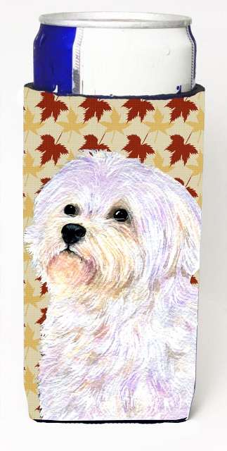 Carolines Treasures SS4375MUK Maltese Fall Leaves Portrait Michelob Ultra bottle sleeve for Slim Can