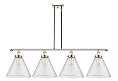 INNOVATIONS LIGHTING 916-4I-PN-G44-L-LED BALLSTON X-LARGE CONE 4 LIGHT 48 INCH SEEDY GLASS ISLAND LIGHT, POLISHED...