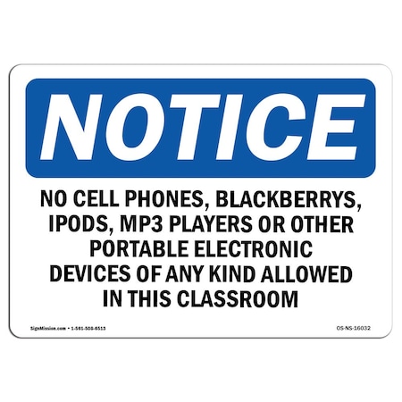 OSHA Notice Sign - Notice No Cell Phones Allowed in This Classroom | Vinyl Label Decal | Protect Your Business, Construction Site | Made in The USA