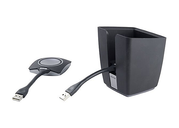 - ONE-CLICK SCREEN SHARING — The iconic ClickShare Button puts the ‘Click’ into ClickShare: connect to any PC or tablet with a USB port, start the application, click to share. The Barco ClickShare Tray stores multiple buttons to keep the room clutter-free.