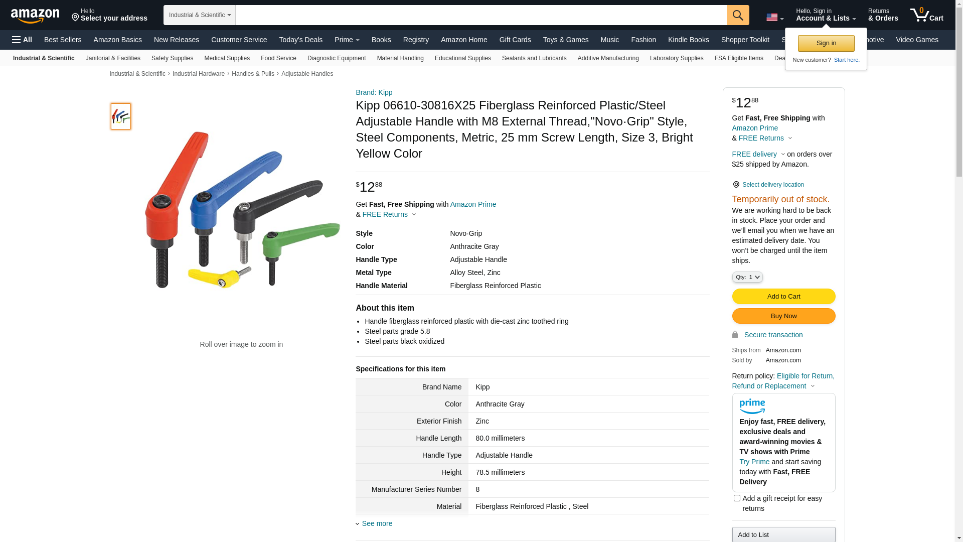KIPP K0269.30816X25 ADJUSTABLE HANDLE SIZE:3 M08X25 PLASTIC YELLOW RAL1021 COMP:STEEL - MROSupply.com