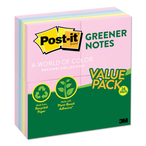 POSTITGREENERNOTES 654RP24AP Original Recycled Note Pads, 100 3 x 3 Sheets, Sunwashed Pier, 24 Pads/Pack