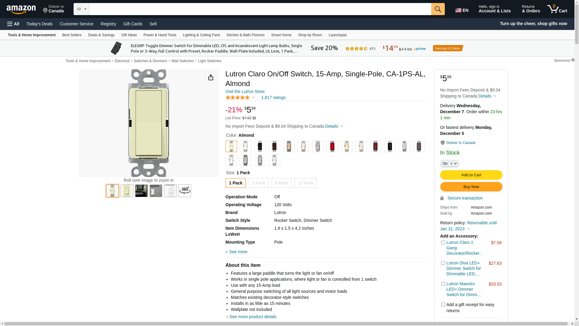 ![]() electricbargainstores.com | LUTRON-CA-1PS-AL | 1 | Usually Ships in 3-5 business days. Urgent Project | 1 | |